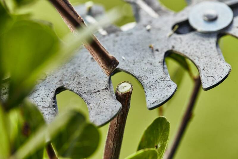 Of je nu een accu- of handmatige heggenschaar gebruikt, je moet altijd in een lichte hoek snoeien. Zorg er ook voor dat de messen van jouw trimmer scherp zijn, om te voorkomen dat er plantdelen worden geplet of beschadigd raken; snoeiwonden werken immers makkelijk infecties in de hand.