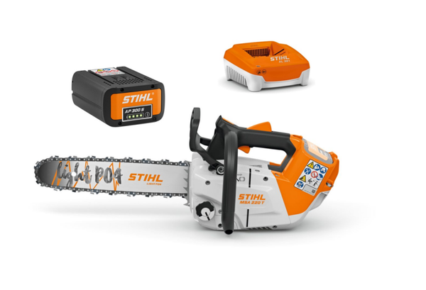 STIHL ACCU KETTINGZAAG VOOR BOOMVERZORGING MSA 220 TC IN SET MET AP 200S ACCU EN AL 301 OPLADER : KETTINGZAAG MET TOPHANDLE VOOR GROTE ZAAGPRESTATIES