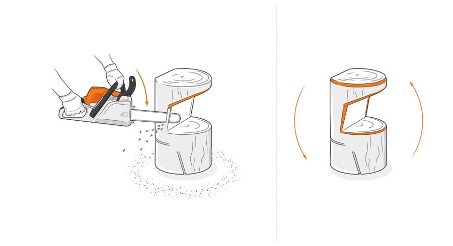 - Maak met de kettingzaag de snede voor de voorkant van de sokkel.